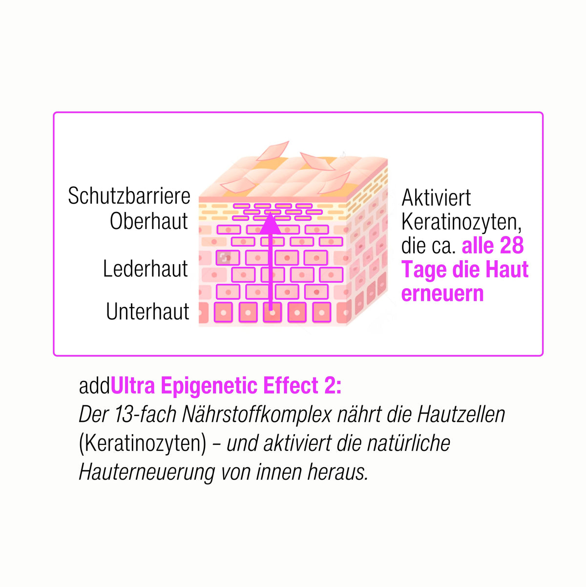 Aktiviert Energiestoffwechsel und die Zellerneuerung. Stärkt die Hautschutzbarriere.